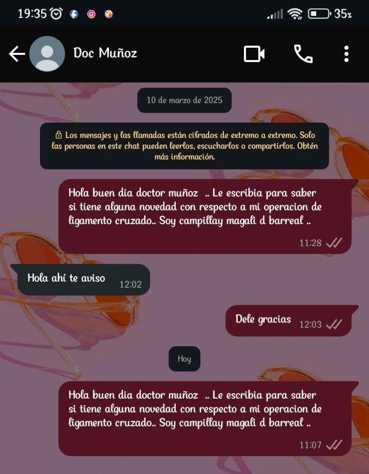 Tras insistentes llamadas telefónicas y mensajes al médico y a su asistente, ninguno de los dos volvió a contestar hasta el 10 de marzo pasado que el médico por WhatsApp respondió que le iba a avisar novedades. “No pude moverme más hasta el Hospital porque de ir y venir me quedé sin dinero y tengo un hija de 7 años” lamentó.