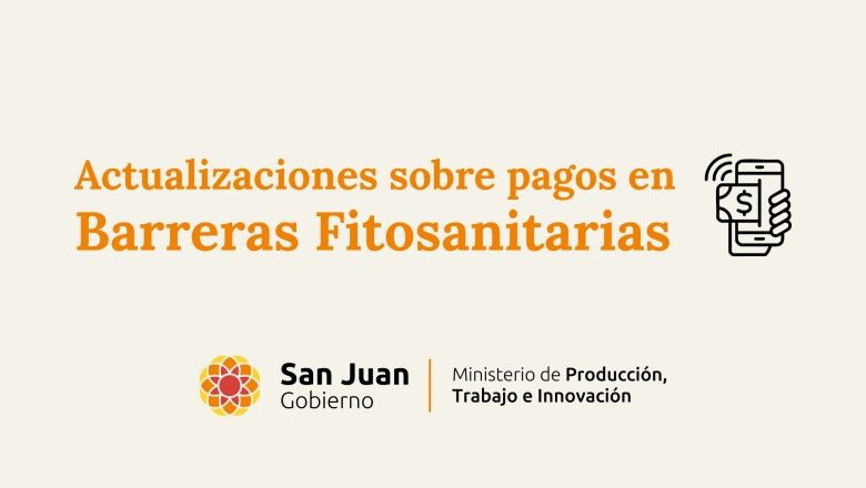 El Ministerio de Producción, Trabajo e Innovación informa que se encuentran disponibles nuevas formas de pagos en las barreras fitosanitarias del Encón, San Carlos y Vallecito.