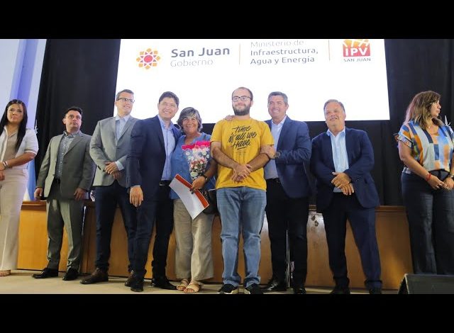 El gobernador Marcelo Orrego encabezó una nueva entrega de escrituras en el Centro de Convenciones. En esta oportunidad, el Gobierno de San Juan consolidó los derechos sobre sus viviendas a 198 beneficiarios de 33 barrios distribuidos entre los departamentos Capital, Rivadavia, Santa Lucía y Rawson.