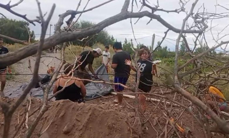 Frente a la amenaza de avanzada, la comunidad perteneciente al club Atenas de Pocito construyeron una defensa de tierra y espinas para que los usurpadores no avancen en la ocupación de tierras.