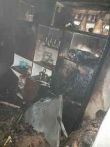 El techo del inmueble era de caña y ardió rápidamente, pero finalmente las llamas fueron controladas por Bomberos Voluntarios de Pocito antes de que se propagara a otras habitaciones.