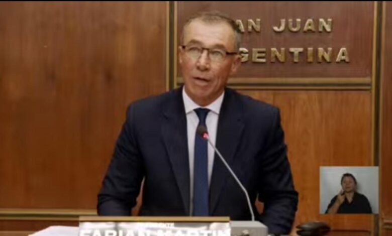 El flamante Vicegobernador Fabián Martín acaba de dar su primer discurso desde la presidencia de la Cámara de Diputados de San Juan. En su mensaje pidió transitar unidos el nuevo camino que emprende la provincia, para que, en consonancia con lo expresado por el Presidente Milei, el país salga de la difícil situación en la que se halla. Además solicitó dejar los egoísmos de lado y los intereses partidarios para anteponer el bienestar de los habitantes del suelo sanjuanino. Cerró su discurso con sentidos agradecimientos a su familia y a sus amigos, entre los que destacó a Roberto Basualdo y al electo Gobernador Marcelo Orrego. Destacó además la presencia del saliente Diputado Nacional José Luis Gioja que asistió a la ceremonia y se ubicó sentado justo al lado de Basualdo.