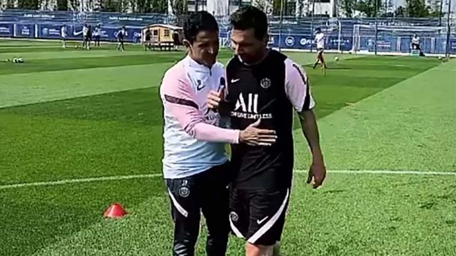 Ya nuevamente en un campo de juego a más de un mes de su última vez (la final de la Copa América ante Brasil), Messi realizó trabajos de recuperación y conoció oficialmente a todos sus nuevos compañeros, entre ellos Ángel Di María, Leandro Paredes, Mauro Icardi y Neymar. Si bien en las imágenes se lo ve jugando un loco a la par del resto, lo cierto es que trabajó diferenciado.