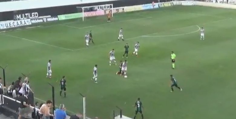 Solamente con el orgullo propio, el elenco sanjuanino intentaba ponerse en partido y descontar. Llego el centro de Ruiz para Gelabert y poner el 4 a 2.