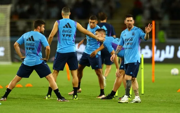 De la práctica participaron 14 jugadores. Junto a Messi estuvieron Angel Di María, Leandro Paredes, Rodrigo De Paul, Cuti Romero, Nicolás Tagliafico, Julián Alvarez, Nahuel Molina, Guido Rodríguez, Franco Armani, Gerónimo Rulli, Germán Pezzella, Exequiel Palacios y Juan Foyth.