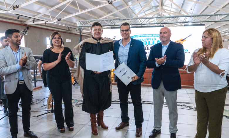 Durante el acto, el compositor sanjuanino Diego Villegas interpretó la cueca “Al Médano de Oro”, elegida como canción oficial del Festival de Doma y Folclore Médano de Oro 2025. En ese marco, el Concejo Deliberante de Rawson entregó la Declaración de Interés a la obra, distinción recibida por el propio artista.