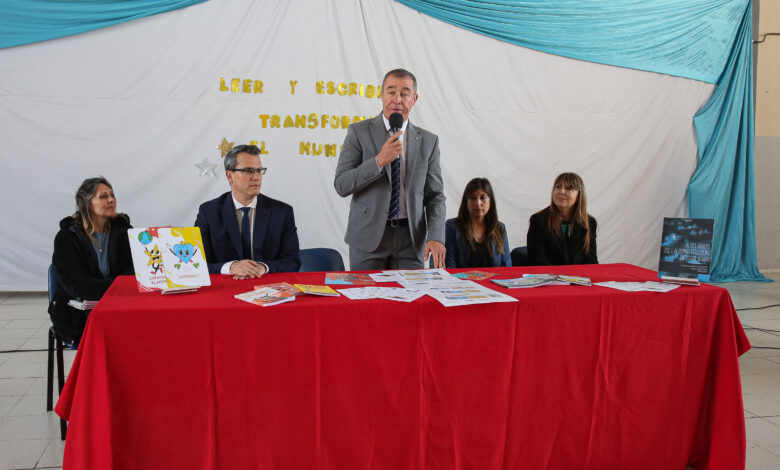La actividad se realizó en el Colegio Superior Nº 1 de Rawson, con la presencia del intendente Carlos Munizaga, la diputada Sonia Ferreyra, el equipo del Fondo Editorial de la Cámara de Diputados, alumnos y docentes del establecimiento, y demás autoridades locales y educativas.