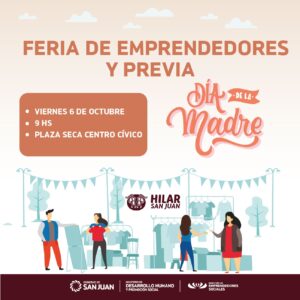 En un evento que promete ser una vidriera para la creatividad y el talento local, el Programa Hilar San Juan, dependiente del Ministerio de Desarrollo Humano y coordinado por la Dirección de Emprendedores Sociales, llevará a cabo una gran Feria de Emprendedores en la Plaza Seca del Centro Cívico el próximo viernes 6 de octubre, a partir de las 9 horas.