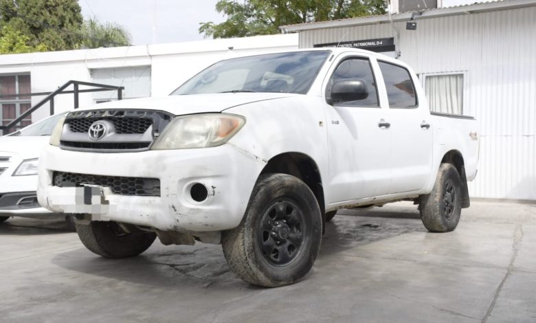 El procedimiento tuvo lugar el pasado 12 de marzo en la zona de Callejón García y Calle Perona, en el departamento Rawson. Allí, los investigadores procedieron al secuestro de una camioneta Toyota Hilux de color blanco.