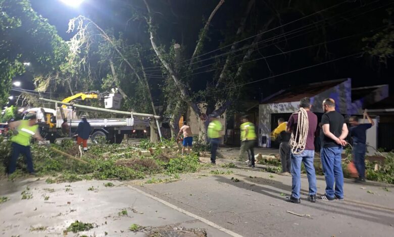 El saldo del tremendo viento fue más de 20 especies arbóreas arrancadas que obstruyeron calles, veredas y plazas y quebró mas de una tonelada de ramas de especies arbóreas añosas.