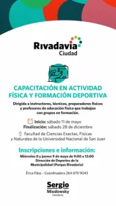 Rivadavia: lanzan una capacitación en actividad física y formación deportiva