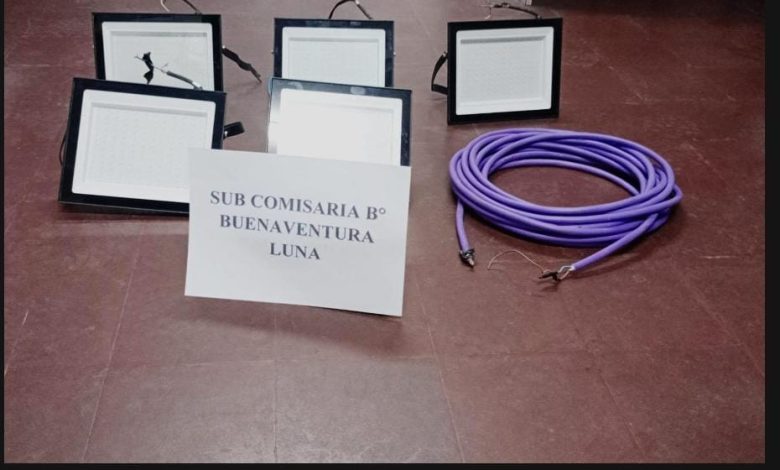 Según informaron fuentes policiales, un guardia de seguridad privada dio aviso sobre la presencia de una persona ajena al establecimiento que sustraía elementos del lugar. Al percatarse de la llegada de los efectivos, el sospechoso emprendió la huida a pie, saltando paredes y dejando abandonados en el patio de juegos cinco reflectores LED de 100 vatios, color negro, y un rollo de cable tipo protodur, color morado, de 11,05 metros.