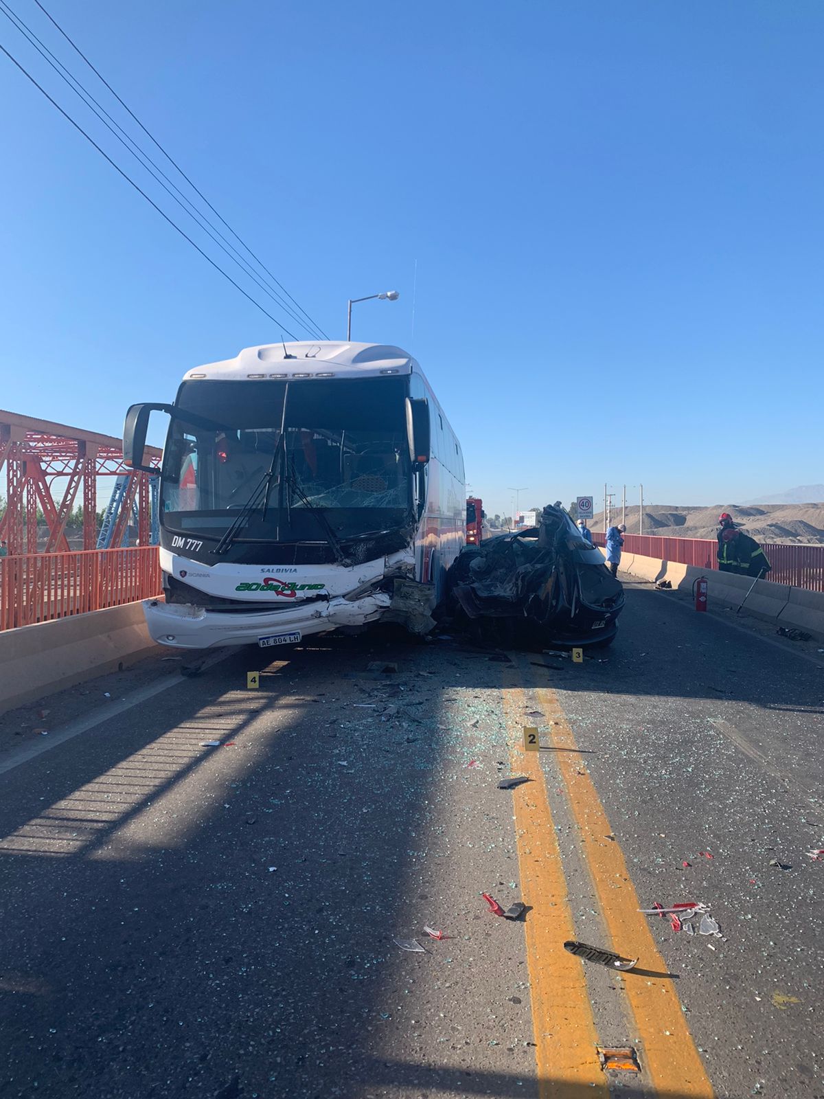 El episodio ocurrió en Ruta Nacional 40 norte, altura puente de Albardón. Allí un colectivo de la empresa 20 de Junio marca Scania dominio AE804LH que circulaba en sentido sur – norte en el carril este de la arteria chocó contra un Ford Focus dominio JTX-415.