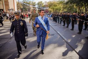La celebración patriótica culminó este domingo 25 de mayo con el tradicional Tedeum, seguido del Desfile Cívico Militar. Antes de ingresar a la Iglesia Catedral, el primer mandatario provincial ofreció sus saludos a los efectivos militares formados que se encontraban en el lugar.