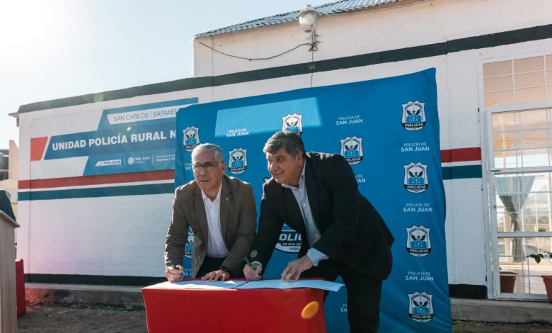 El secretario de Estado de Seguridad y Orden Público, Enrique Delgado, encabezó el acto de refuncionalización de la Unidad Policía Rural N°4 en San Carlos, departamento Sarmiento, junto al intendente de Sarmiento, Alfredo Castro; y el jefe de Policía, NéstorÁlvarez. La actividad incluyó la firma protocolar de un comodato entre el Ejecutivo Provincial y el Municipio, con el objetivo de consolidar un espacio renovado que mejore la operatividad y acerque soluciones concretas a la comunidad rural.