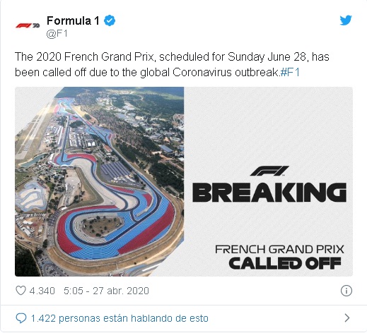 El presidente de la Fórmula Uno, Chase Carey, por su parte, respaldó la decisión «aunque sea decepcionante» y también respaldó el combate del Gobierno galo contra la pandemia.