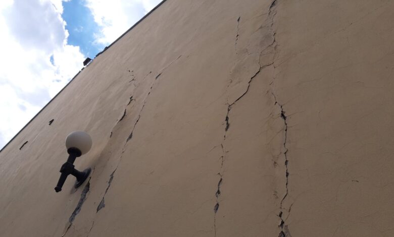 El frente de la parroquia del Convento de Santo Domingo se dañó considerablemente esta mañana tras el temblor que se registró a las 9:48 horas. El epicentro del movimiento según el INPRES fue a 124 kilómetros al noroeste de la provincia de Mendoza; 152 kilómetros al suroeste de San Juan y a 67 kilómetros al noroeste de Uspallata.