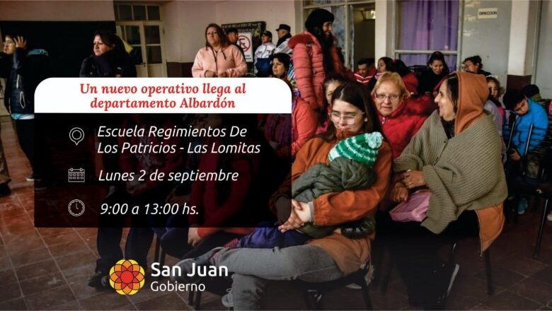 El Ministerio de Familia y Desarrollo Humano de San Juan, en conjunto con diversos ministerios, llevará a cabo el decimoctavo operativo integral en el departamento de Albardón. Se realizará el lunes 2 de septiembre, de 9 a 13, en la Escuela Regimiento de Los Patricios de la localidad de Las Lomitas.