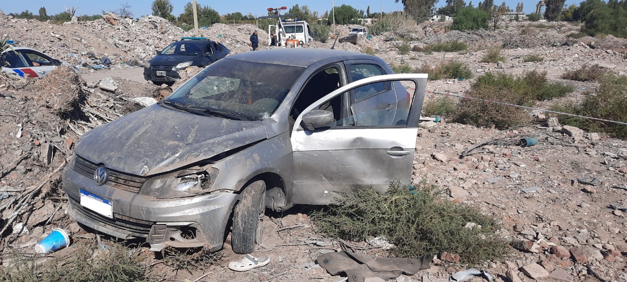 Así Usuna escapa en el Volkswagen Gol pero a los 350 metros embiste un montículo de tierra y escombros y finalmente detiene la marcha descontrolada del vehículo que conducía.