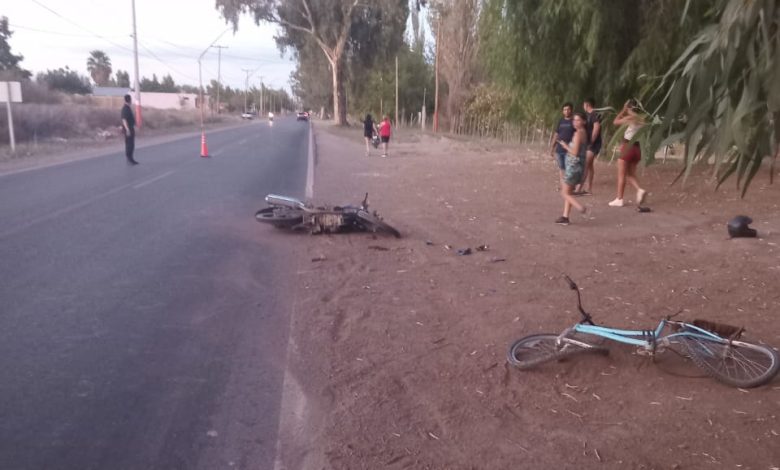 Según los informes preliminares, la moto, conducida por Kevin Barrionuevo, de 23 años, se dirigía en dirección Sur a Norte por calle Nacional. En sentido contrario, una bicicleta, en la que viajaban Hilda Concepción Bruna, de 47 años, y su hija menor, de 7 años, intentó cruzar de carril para ingresar a una vivienda, momento en el cual se produjo el impacto.