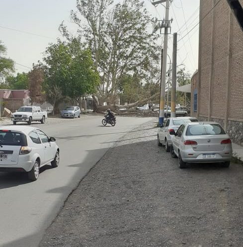 En algunos puntos de la provincia el fenómeno causó estragos produciendo la caída de árboles de grandes dimensiones. Un eucalipto de gran porte cayó sobre calle Sargento Cabral en inmediaciones de la bodega Graffigna cerca de la cancha de Colon Juniors en Capital.