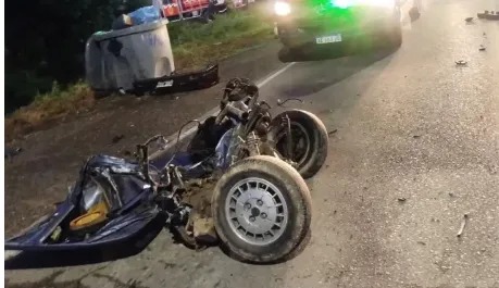 Testigos del accidente indicaron que el impacto fue tan fuerte que las ruedas traseras y un guardabarros quedaron esparcidos sobre la calle, mientras que el resto del auto terminó en un desagüe ubicado al costado de la calle La Plata.