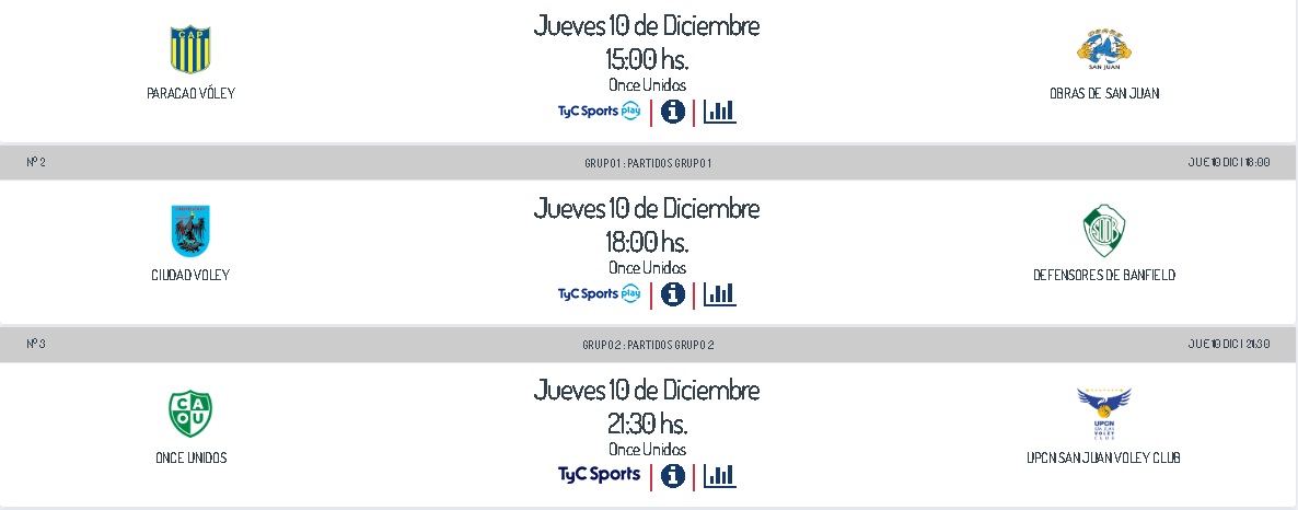 El que abre el fuego será Obras con el elenco de Paracao, y el que cierra la jornada será UPCN, el otro equipo de San Juan quedará libre.